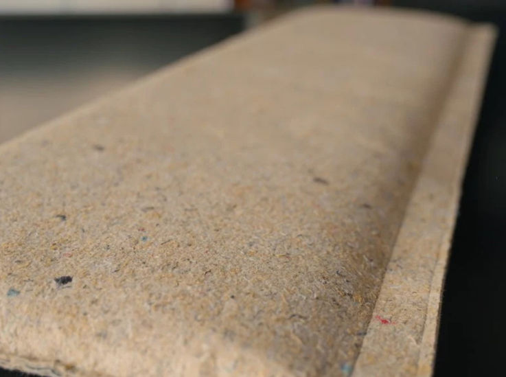 From 50-75% fibre waste, mixed with recycled or bio-based binder